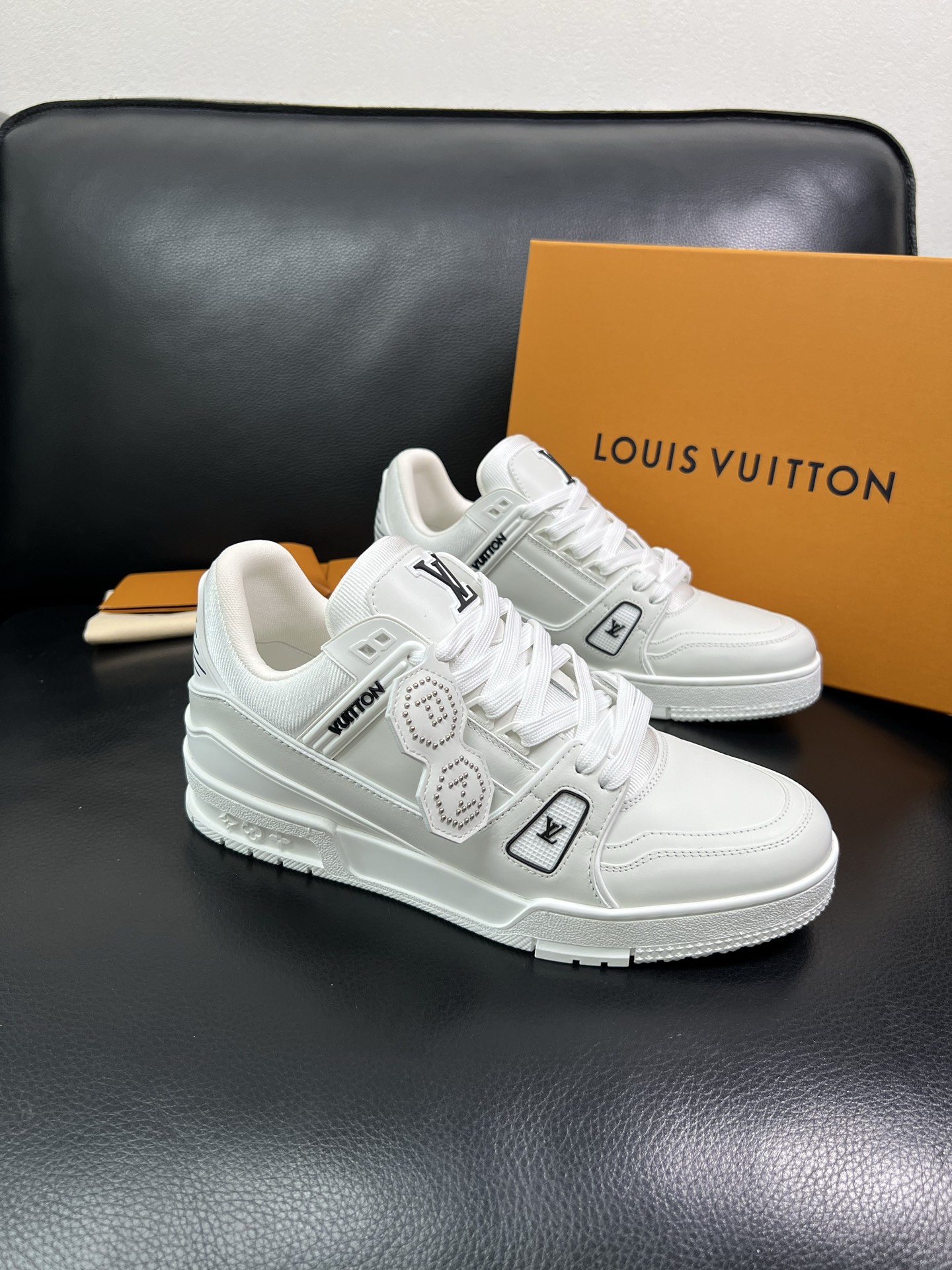 這雙 LV 一比一白色運動鞋,以純白色調搭配立體 LV 標誌,乾淨俐落,盡顯品牌高級感。鞋身以優質皮革打造,搭配精緻縫線與細節設計,質感出眾。厚底設計兼具舒適與高度修飾,增添穿著時的時尚感與實用性。一比一品質對標正品,細節處理到位,無論是日常通勤還是潮流穿搭,都能輕鬆駕馭,展現不凡品味。