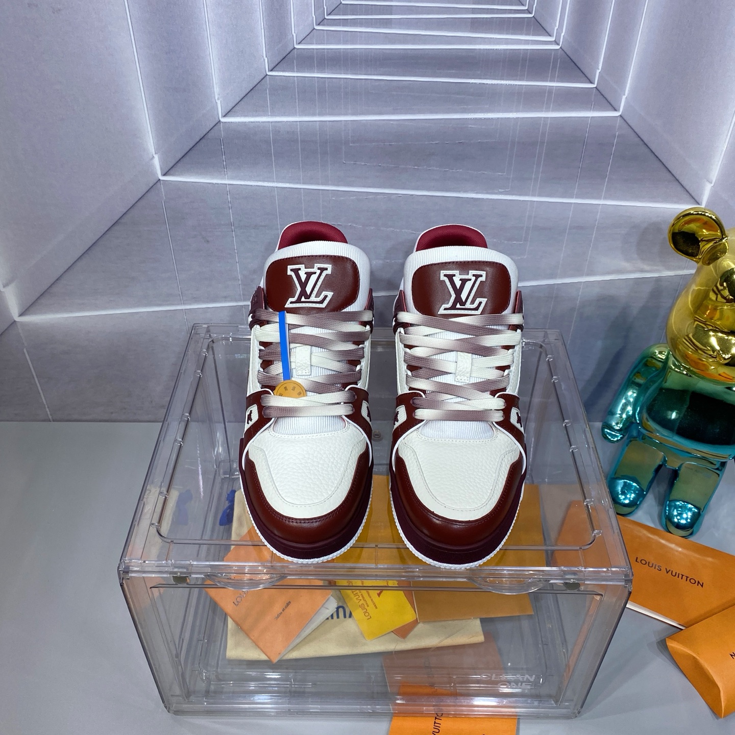 本頁精選來自本季熱賣款式,擁有不挑人的版型與簡約風格。這款LV原單男士運動鞋採用經典Trainer輪廓,酒紅與白色拼接設計展現沉穩又不失亮眼的時尚感。鞋身皮革與網布拼接,透氣度佳,鞋底防滑耐磨。多位客人回饋「實物顏色質感極佳,穿上後舒適度與支撐性都接近專櫃鞋款」,不僅適合日常休閒,也能搭配街頭風格穿搭。此款原單鞋兼顧質感與實用性,是年輕族群必備的高質感單品。