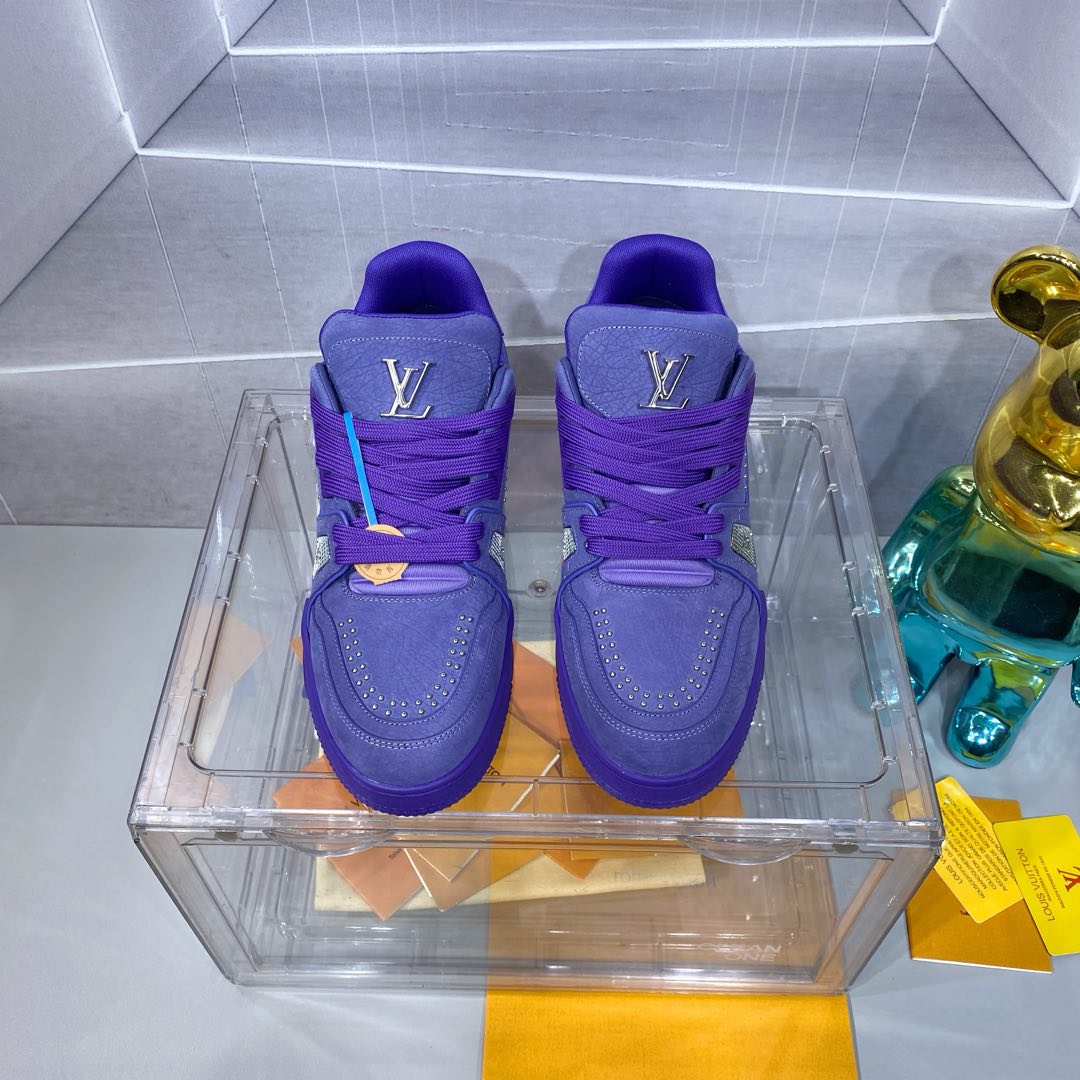 為您推薦最新一季潮流單品,設計時尚、實用性高。這款LV A貨男士運動鞋採用紫色皮革打造,鞋舌飾有銀色Logo,鞋頭金屬點綴細節更添設計感。鞋底結構穩固耐磨,穿著舒適不顯笨重。多位客人回饋「鞋子上腳後非常亮眼,搭配簡約服飾即可成為整體穿搭的焦點,外觀幾乎與專櫃一致」。此款A貨鞋兼具質感與個性,是街頭潮流與休閒風格的必備單品。