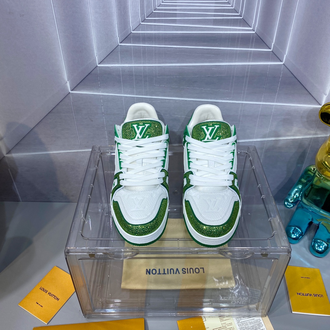 這款LV 精品仿製運動鞋以綠白配色為基調,鞋面鑲嵌鑽飾細節,展現出清新卻華麗的氛圍。鞋舌大面積Logo醒目立體,結合高質感皮革與細膩縫線,穿搭時兼具潮流與舒適感。實際上腳回饋「清爽時尚,鞋身光澤度很驚艷,走路也很穩定」,精品仿製版本對標專櫃水準,讓日常穿搭更具亮點。 商品說明: