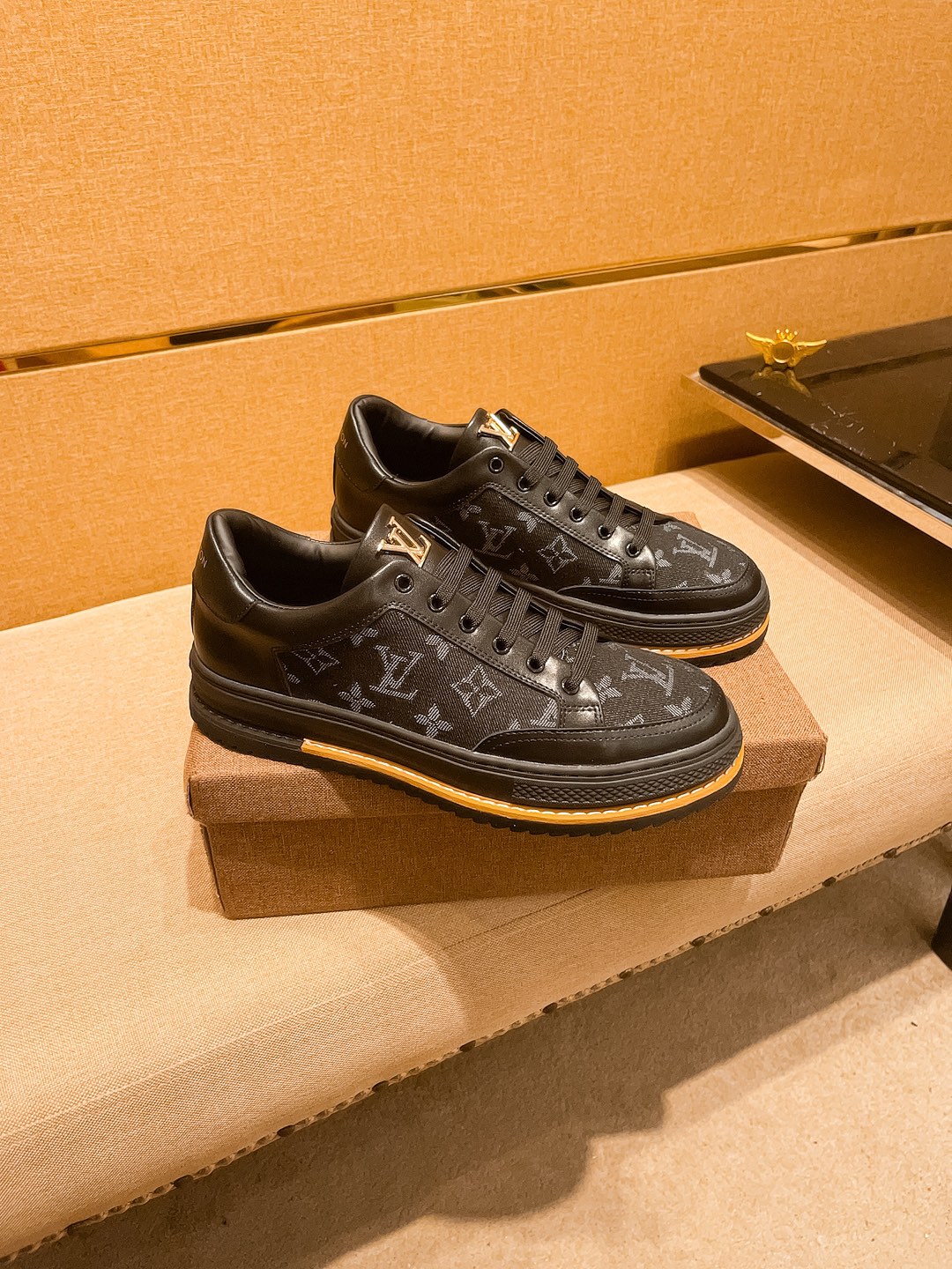 這款 LV 一比一黑色 Monogram 運動鞋,以品牌標誌性帆布與小牛皮拼接,展現沉穩又低調的奢華感。鞋面印有經典 Monogram 圖案,搭配黑色鞋底與橙色線條細節,細節設計充滿辨識度。舒適的內裡和耐磨鞋底設計,讓它兼具時尚與實穿性。許多買家反饋穿著體驗與專櫃無異,是日常休閒和街頭風格的理想之選。
