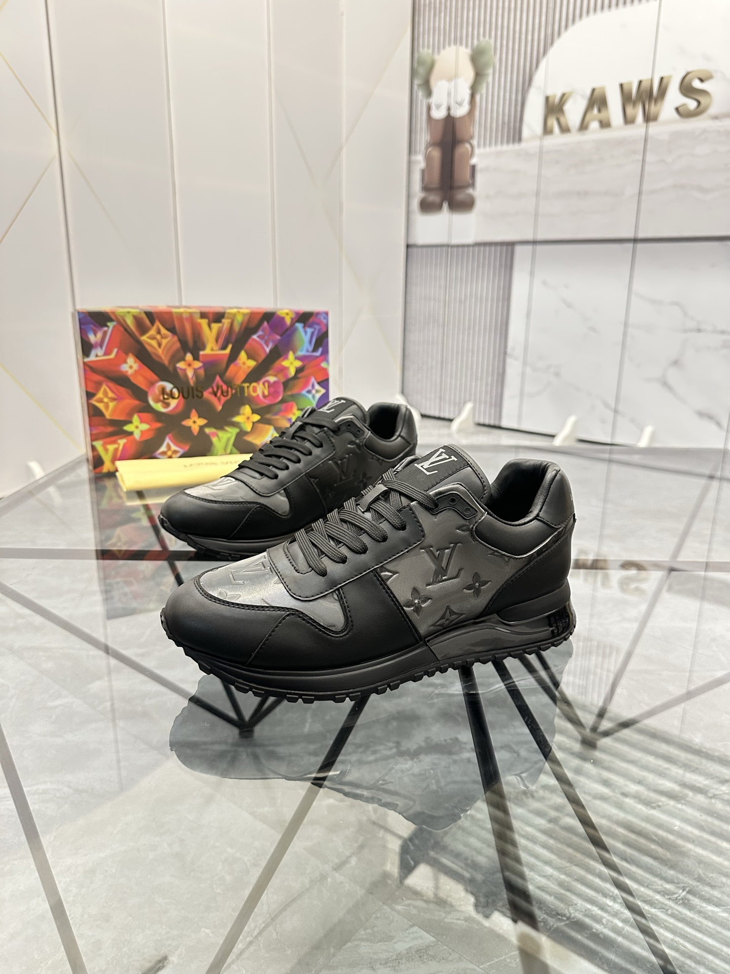 這款 LV 高仿灰黑拼接運動鞋,鞋頭與鞋側均採用經典 Monogram 浮雕,搭配霧灰與黑色皮革拼接,呈現層次感十足的質感。鞋底橡膠紋理強化抓地力,長時間穿著依然舒適。客戶回饋指出,無論是搭配牛仔褲或運動休閒風格,都能展現低調奢華氛圍。鞋面細節做工嚴謹,對標專櫃質感,適合日常與街頭穿搭。