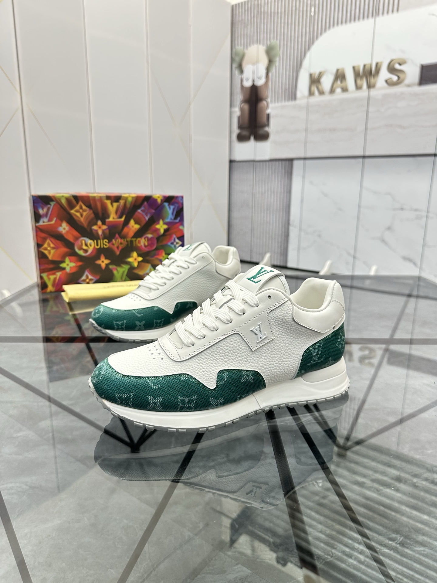 這雙 LV 精品仿製綠白拼接運動鞋,鞋面以細膩荔枝紋皮革搭配品牌標誌性 Monogram 綠色帆布拼接,清新又時尚。鞋頭與鞋跟處的拼色設計增添層次感,展現年輕活力氛圍。內裡選用柔軟材質,透氣舒適,鞋底則搭配輕量化防滑設計,行走穩定不易疲勞。這款精品仿製球鞋無論搭配牛仔褲還是休閒套裝都能展現獨特氣質,適合注重質感與舒適度的男士。