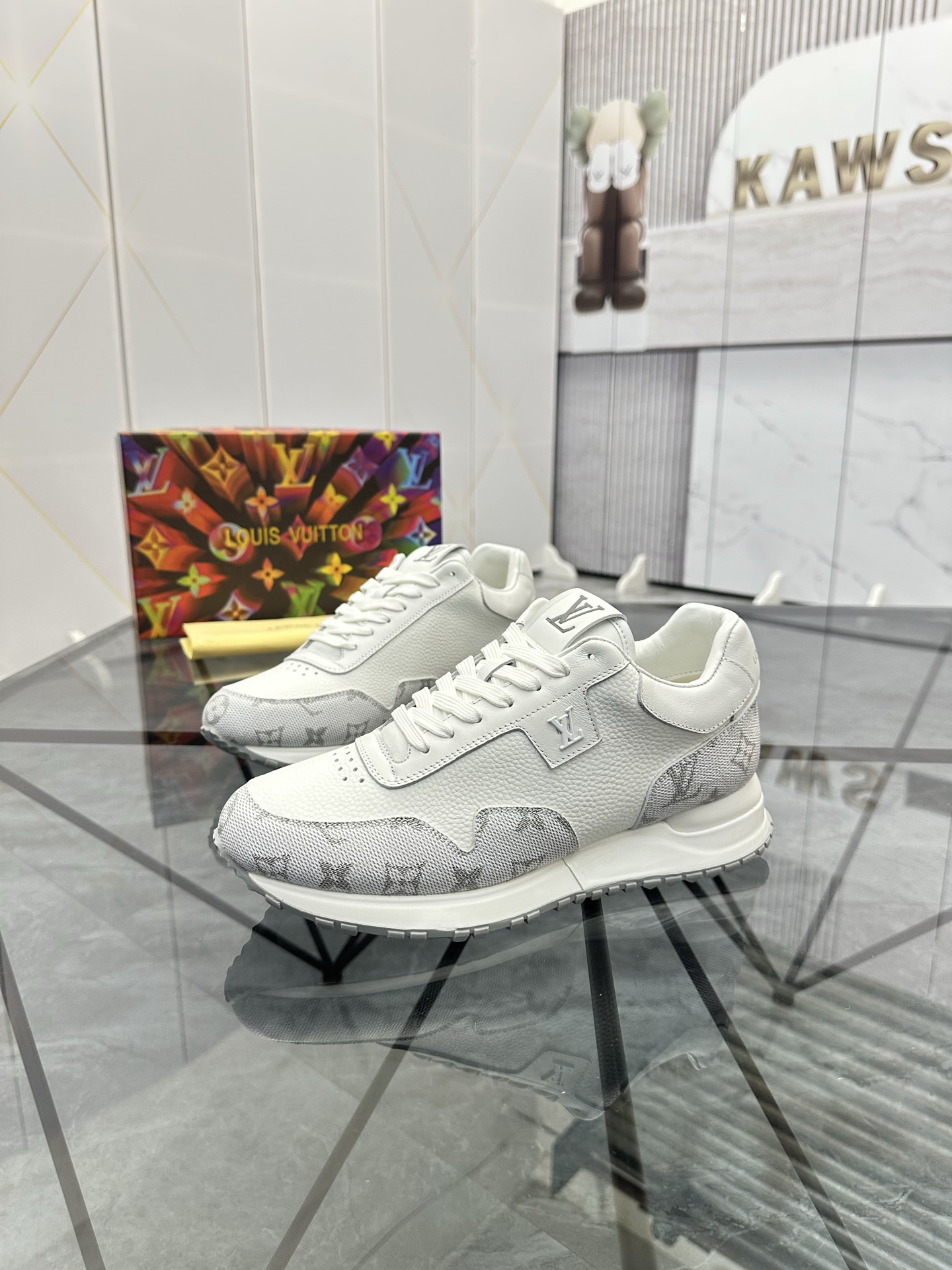 這雙 LV 原單白色運動鞋,以純白荔枝紋皮革搭配 Monogram 壓紋細節,展現簡約而不失奢華的質感。鞋頭與鞋舌均飾有經典 LV 標誌,低調卻極具辨識度。鞋面拼接設計讓層次感更豐富,整體更顯時尚。柔軟內裡結合輕量化橡膠鞋底,穿著舒適,無論是日常出行還是都市穿搭都能輕鬆駕馭。這款原單運動鞋兼具高端質感與百搭屬性,是男士休閒造型的理想之選。