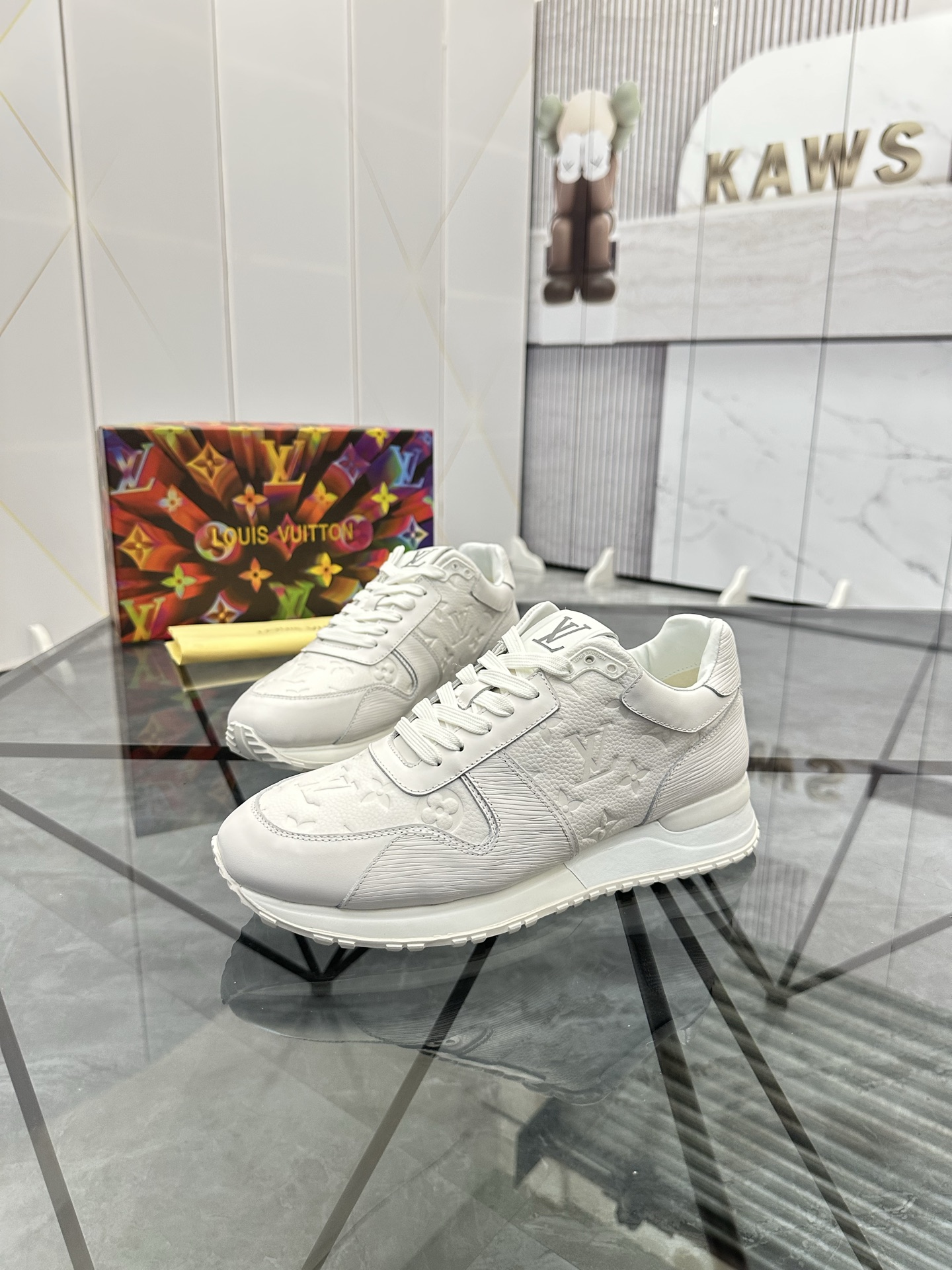 這款 LV 原單全白壓紋運動鞋,以純淨白色為基調,鞋面壓印 Monogram 經典圖案,簡約卻不失高級感。鞋身採用柔軟皮革,搭配耐磨橡膠鞋底,行走時穩定而舒適。全白配色極具百搭特性,無論搭配休閒牛仔或正裝風格,都能展現俐落時尚氛圍。低調的壓紋細節更彰顯品牌工藝,是追求簡約又講究質感人士的理想之選。
