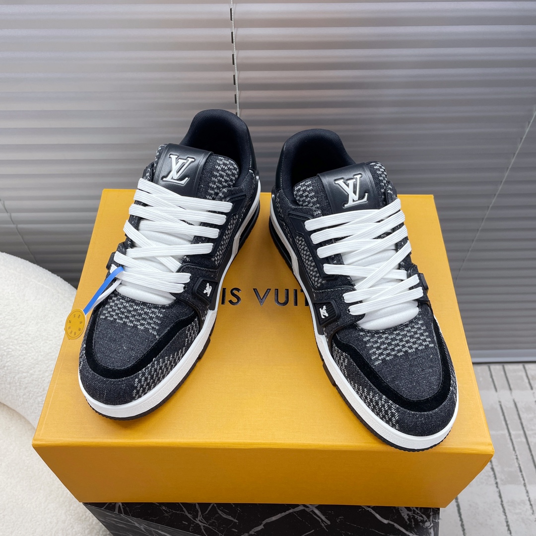 這款 LV 高仿黑白拼接運動鞋,以黑白色系為主調,簡約中帶有強烈的時尚感。鞋面採用細緻拼接工藝,搭配皮革與布料結合,呈現出層次分明的設計效果。鞋舌上的 LV 標誌清晰立體,搭配純白鞋帶,提升辨識度與時尚感。鞋底設計具有良好緩震效果,適合日常穿搭與出街造型。此鞋不僅外觀精緻,穿著舒適,無論搭配牛仔褲還是運動休閒裝,都能展現品味與個性。