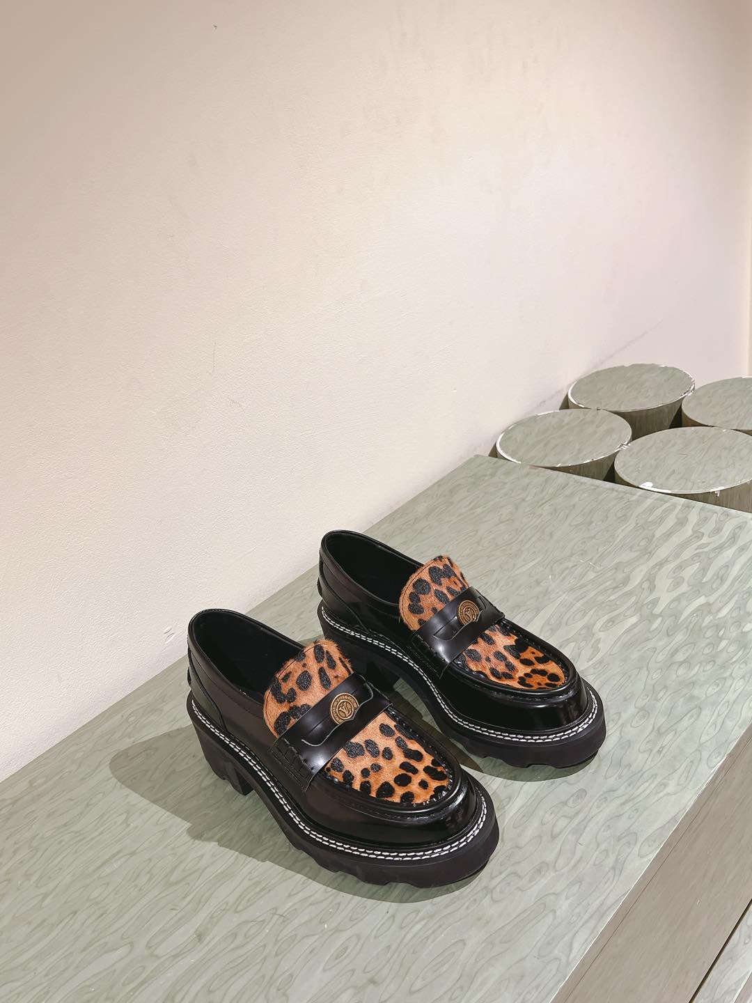 為您推薦最新一季LV精品仿製豹紋厚底樂福鞋,運用時尚豹紋元素與亮面皮革結合,營造出摩登大膽的視覺效果。鞋面搭配品牌標誌性LOGO金屬扣,細節精緻吸睛。厚底設計增高修飾腿型,行走舒適穩定。選用【莆田鞋】高端製作工藝,細節處理講究,品質可靠,為造型加分的時髦之選。