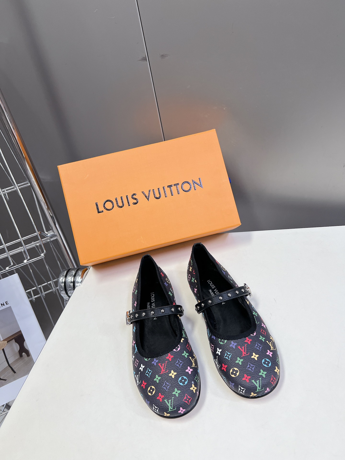 本頁精選LV原單彩色老花黑底瑪莉珍鞋,採用經典Monogram彩色圖騰搭配黑底帆布,打造摩登又活潑風格。鞋面點綴金屬扣帶,為整體增添俏皮時尚感。圓頭鞋型舒適貼合,輕盈鞋底適合日常穿搭。原單製作,細節完美呈現高品質,適合搭配裙裝、牛仔褲等多樣造型,打造年輕優雅氣息。