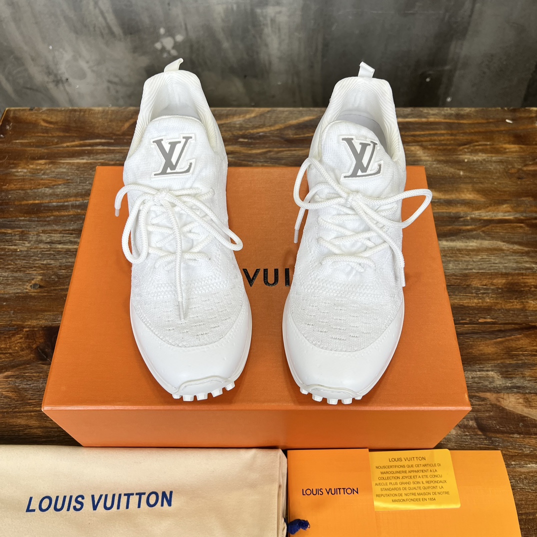 這款高仿Louis Vuitton男士全白運動鞋採用輕量飛織鞋面結合皮革拼接設計,鞋面以低調刺繡呈現LV經典Monogram圖騰,兼具透氣與時尚感。鞋底使用柔韌防滑橡膠底,搭配厚實中底提升緩震舒適性,適合日常穿搭或運動休閒穿著,展現輕奢風格與都會活力。