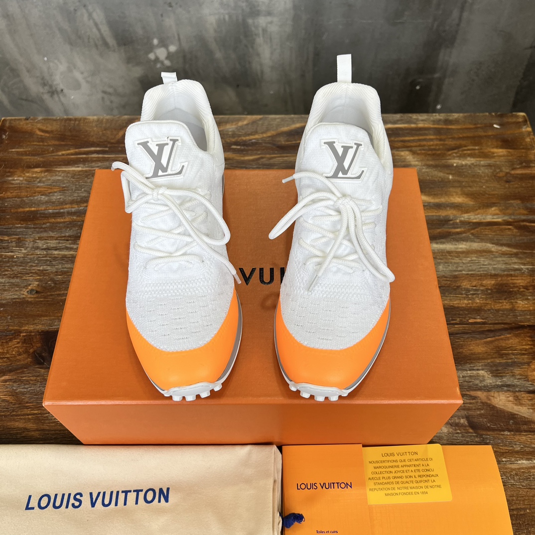 這款LV高仿男士運動鞋選用白色針織材質搭配亮眼橘色皮革拼接,充滿活力與夏日氣息。鞋舌上飾有立體LV標誌,整體線條流暢,舒適又不失設計感。中底支撐良好,輕便耐穿,適合日常穿搭、城市漫步或休閒活動。亮橘點綴使整體造型更加吸睛,是一雙兼具機能與時尚的高品質仿品。