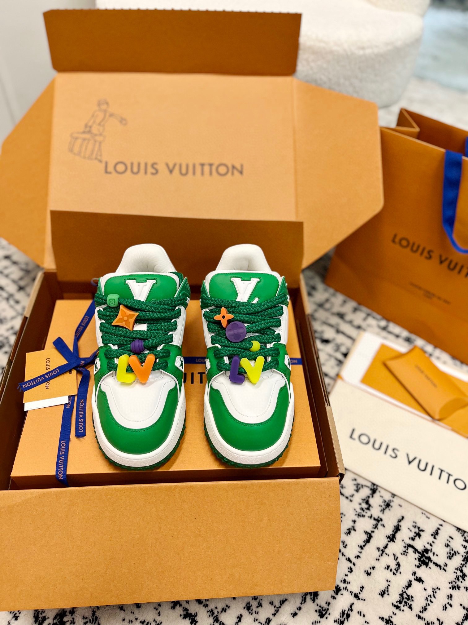 這款LV高仿綠白配色運動鞋展現出清新又具活力的視覺感受,結合復古籃球鞋輪廓與潮流元素,打造出獨特又吸睛的風格。鞋面以多材質拼接,搭配搶眼的彩色LV字母與星形吊飾,彰顯個人品味。厚實鞋底設計提供絕佳緩震效果與腳底支撐,長時間穿著亦保持輕盈舒適。無論是搭配牛仔褲、工裝褲或運動風穿搭,都能散發街頭潮流魅力。商品說明:
