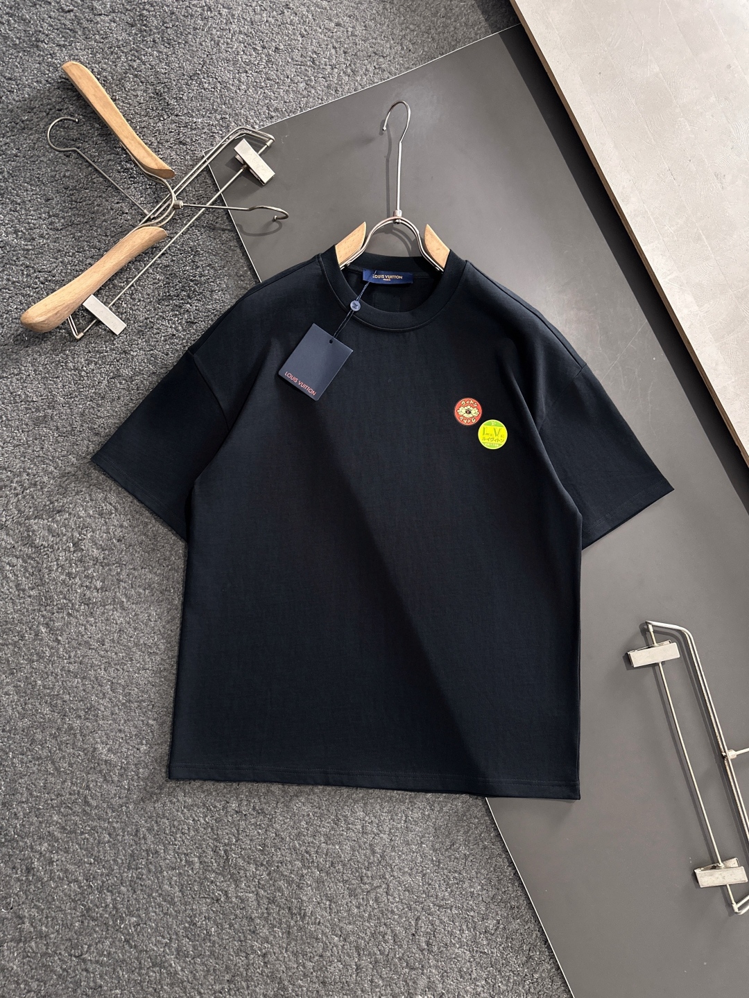 這款LV原單黑色短T運用圓形徽章風格設計,將品牌標誌巧妙融入潮流元素中。紅色童趣卡通圖樣與黃色LV標語徽章相互呼應,呈現趣味且不失質感的設計語彙。使用高磅數純棉布料製作,厚實不透膚且吸濕排汗效果佳,穿著舒適又耐洗耐穿。剪裁上採用微寬落肩設計修飾身形,無論日常外出或街頭造型搭配皆極具可塑性。低調中帶有亮點,適合追求品味與風格兼具的你。