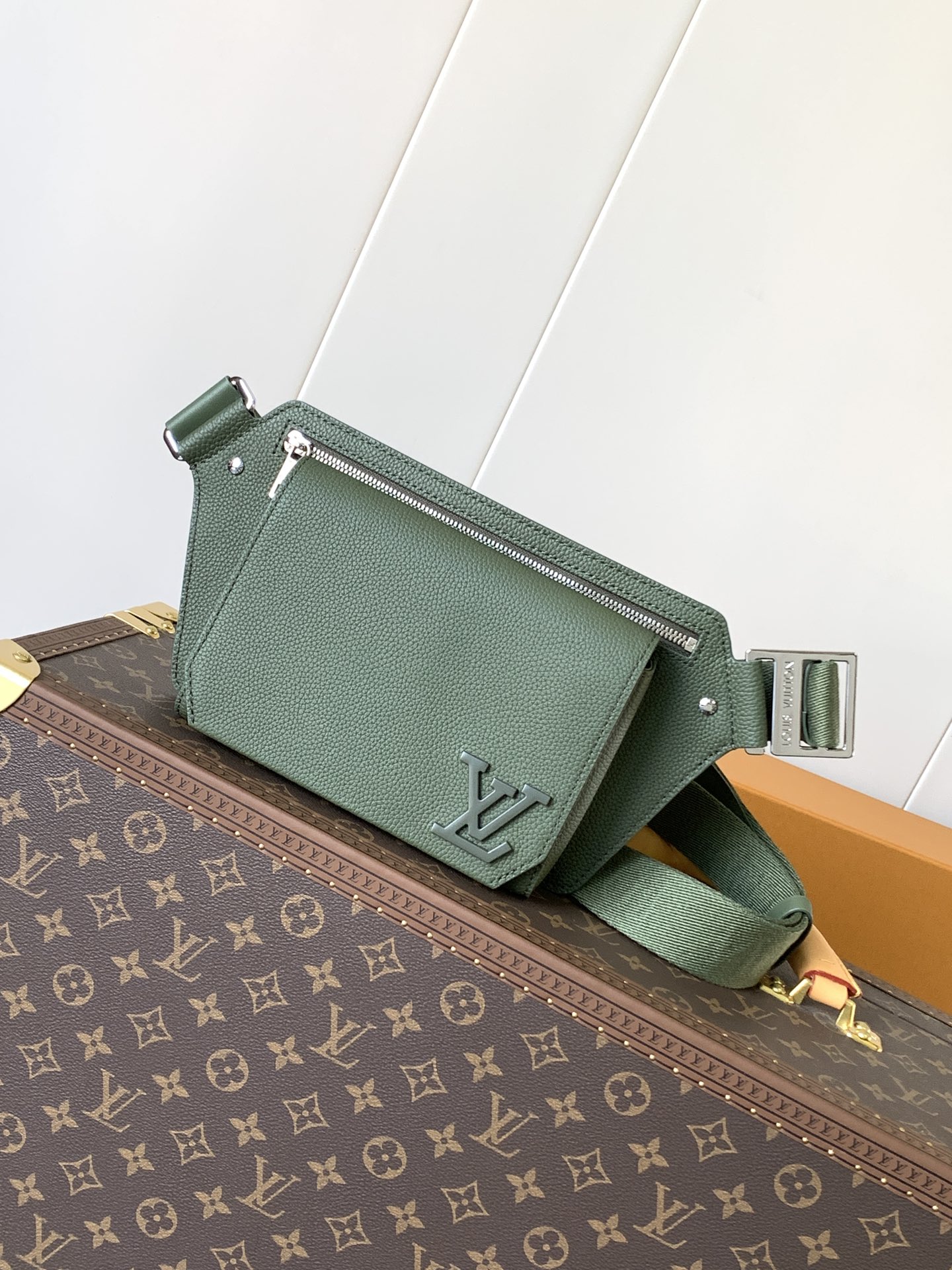 這款Louis Vuitton男士腰包採用霧感綠色粒面牛皮製作,質感細膩紮實,搭配同色系立體LV Logo,整體風格簡約卻不失設計感。包身輕盈,容量剛好可放手機、錢包、耳機等日常隨身物品,適合斜背、腰背、胸背等多種背法,靈活實用。高仿原單等級,全套五金、皮革與縫線精準還原正品工藝,展現低調奢華的男性魅力,是日常出門、旅遊搭配的首選精品。