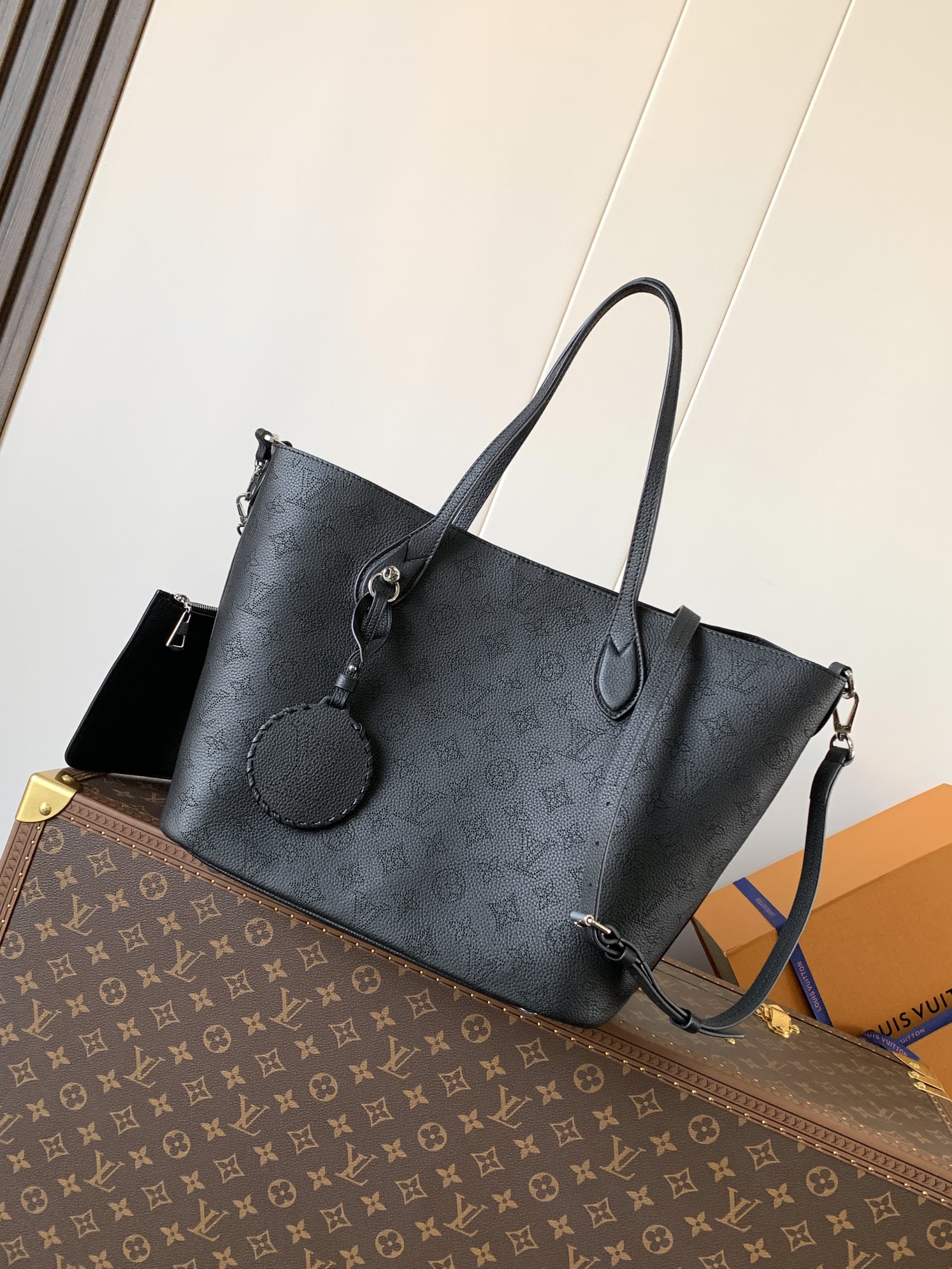 這款Louis Vuitton黑色壓紋托特包以原廠等級壓紋皮革製成,手感細膩柔韌,滿版Monogram圖案低調卻充滿辨識度,展現低調奢華的女性魅力。包款設計俐落大方,結構挺括,無論上班、外出購物或日常穿搭皆適用。此高仿版本為一比一精緻復刻,內裡細節、五金拉鍊與縫線處理皆與專櫃無異。內部空間寬敞,可輕鬆放入13吋筆電、長夾、化妝包及日常用品,是兼具時尚與實用的必備包款。附有可拆式長背帶,提供手提與肩背兩種攜帶方式。