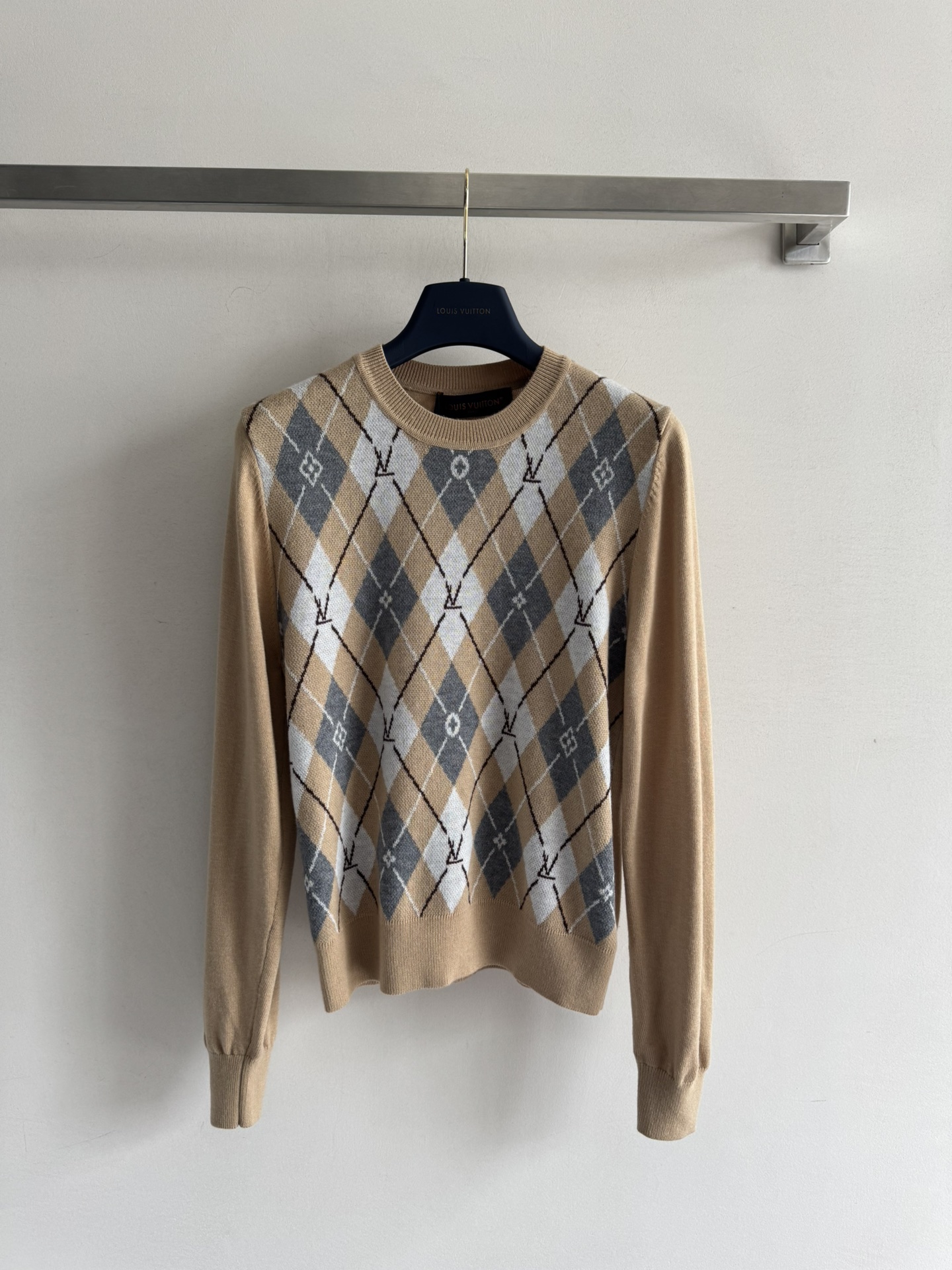 本頁精選來自人氣熱銷款式,搭配性極高,不論男女皆適合。LV 一比一菱格長袖針織毛衣以復古米杏色為基底,融入經典菱格圖騰與品牌 Logo 交織細節,整體呈現學院感與紳士氣息。布料柔軟舒適,穿著無負擔,適合日常外出或辦公通勤穿搭。