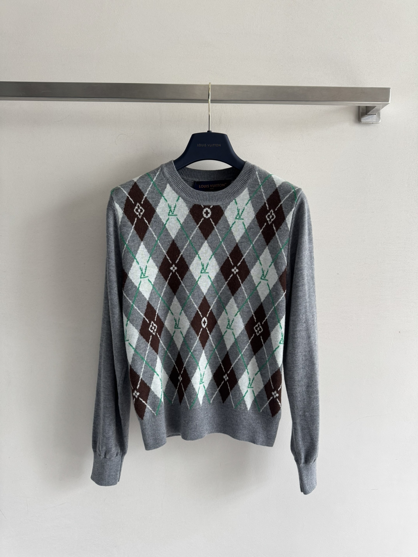 多位買家給出五星評價,表示實物質感優於預期。此款 LV 高仿灰綠菱格針織毛衣以沉穩灰調與深棕綠菱格交織設計,搭配LV Logo紋樣錯落展現復古書卷感。厚薄適中不刺膚,實穿性強,單穿或內搭襯衫皆適合。