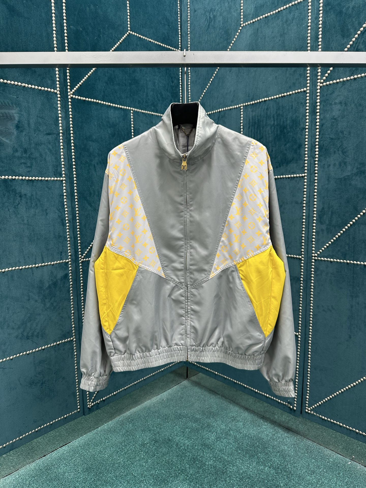 設計靈感源自專櫃同款,展現日常穿搭的高級感。這款LV高仿風衣外套以灰色底與黃色拼接元素組成,結合品牌Monogram壓紋與高領設計,外型醒目卻不浮誇。客人表示「穿上立體挺版,保暖性佳又顯時髦」,適合春秋交替或戶外運動風穿搭。