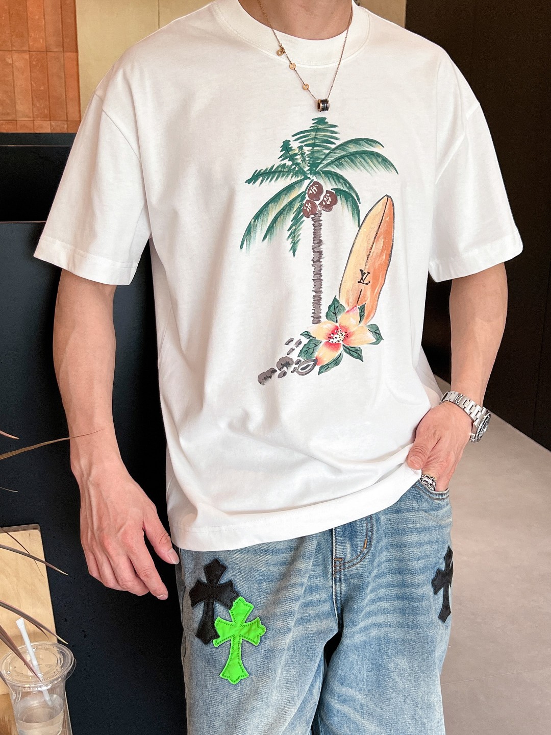 根據客人回饋,這款LV高仿手繪短袖T恤白色款穿上後極具設計感且版型優異。採用高品質純棉布料製作,手感柔軟細緻,輕盈透氣,炎夏也能保持舒適。正面印有手繪風格藝術圖案,讓整體造型更具視覺焦點,是近期高仿服飾中詢問度極高的精品之一。