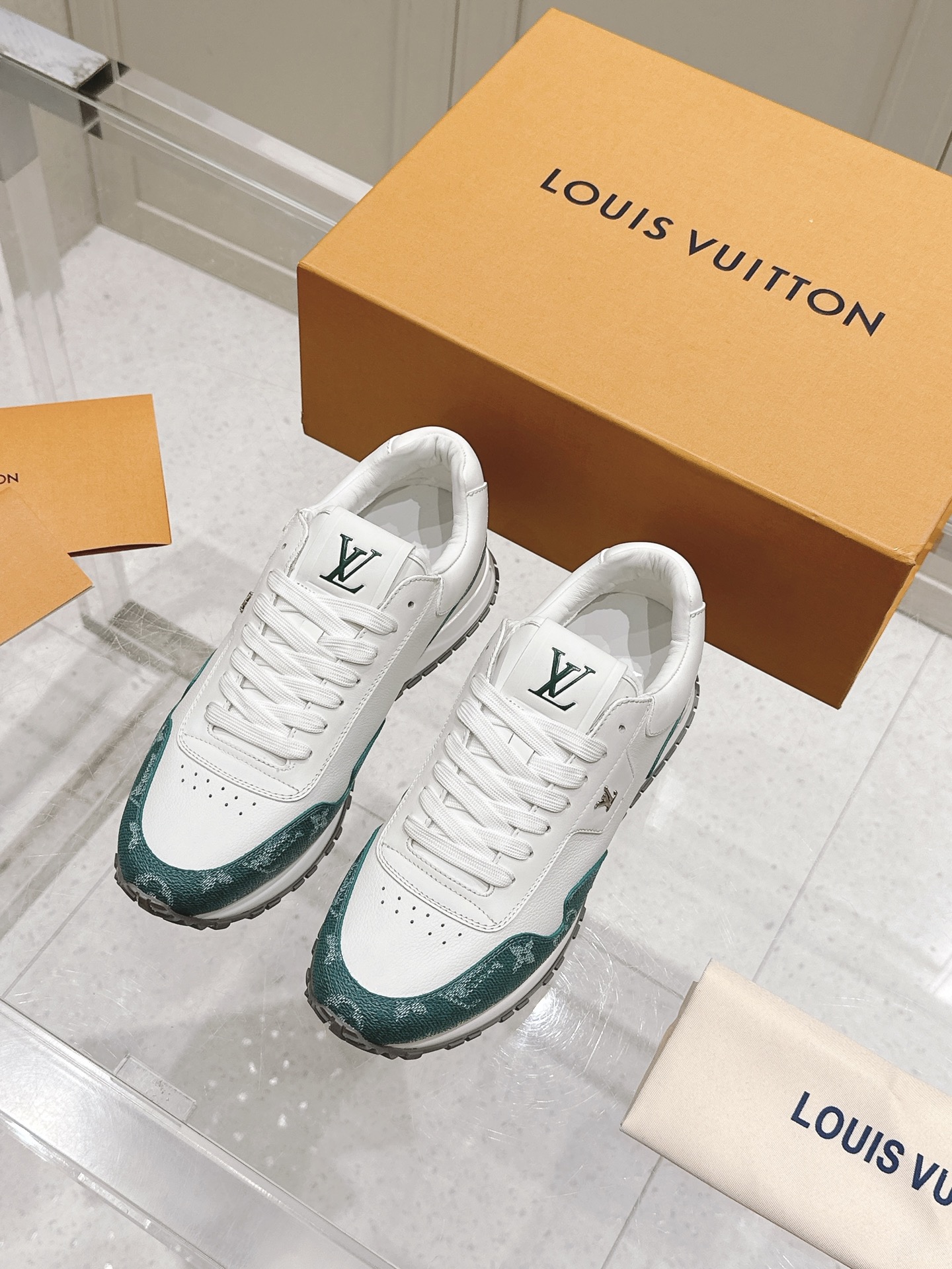 採用時下最受矚目的配色之一,這款LV Run Away白綠老花鞋款以清爽白底搭配綠色細節與Monogram老花,展現青春活力。鞋面皮革觸感細膩,鞋底柔軟貼地,深受年輕族群喜愛。擁有時尚外型與高品質做工,是春夏必收的熱門高仿鞋選擇。